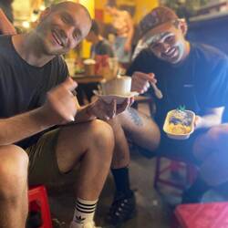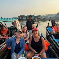 Am letzten Tag begann der Tag bereits um 5 Uhr, da es nun für uns auf die Floating Markets ging. Das ist ein Markt auf dem Wasser, der aus der Kriegszeit stammt, um dem wenigen Platz in der Stadt auszuweichen. Hier gibt es Boote die nur in großen Mengen Obst und Gemüse verkaufen. Als Touristen hatten wir hier eine Pho zum Frühstück und konnten ein Handelsboot, dass Ananas verkauft besichtigen. Dies ist normalerweise nicht für Touristen zugänglich, aber da davon ausgegangen wird, dass die Märkte in dieser Art in den nächsten Jahren schwinden werden, möchte man diese Traditionen zeigen. Mit dem Boot ging es dann noch weiter zu einer Reisnudelfabrik, einer Kakoaplantage sowie einem Obst und Gemüsegarten. Bei allen Stops konnten wir viel kosten und ausprobieren. Nach einem leckeren Mittagessen in Cần Thơ ging es für uns wieder nach HCMC mit so vielen tollen Erlebnissen im Gepäck, die es erstmal zu verarbeiten gilt.Read more