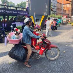 Angekommen in Vietnam, genauer gesagt in Ho-Chi-Minh-City (der größten Stadt Vietnams) standen wir erstmal ca. zwei Stunden bei der Einreise bis wir endlich zur Unterkunft fahren konnten. Alleine die Fahrt dorthin war ein kleiner bis mittelgroßer Kulturschock, denn so viele Roller auf den Straßen haben wir bisher nicht gesehen. Wenn so ein Roller näher als nah an einem vorbei fährt, ist es nicht verwunderlich, wenn er entweder mit allem beladen ist, was man sich nur im entferntesten vorstellen kann oder anstatt einer Person auch mal bis zu 4 Personen darauf sitzen. Verrückterweise tragen die Erwachsenen fast immer Helme, die Kinder allerdings eher selten. In Singapur haben wir bereits die Empfehlung bekommen, wenn man über die Straße geht soll man einfach über die Straßen gehen, da die Roller ausweichen, niemals jedoch einen Schritt zurück gehen. Das konnten wir schnell Bestätigungen und nach jedem überqueren der Straße war man froh, es geschafft zu haben. Grundsätzlich würde ich sagen sind Verkehrsregeln eher Empfehlungen. 🙈🤣