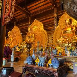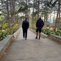 Der 3. Tag startete für Tommy sehr früh, da er eine Guide gebuchte hat, um auf den höchsten Berg Vietnams oder auch das Dach Indochinas - den Fanispan - zu wandern. Vom Glück geküsst, da das Wetter hier schnell schwankt, konnte Tommy eine tolle Zeit beim Auf- und Abstieg genießen, auch wenn es sehr kalt war, hat sich die Aussicht mehr als gelohnt. Ich habe mich für die Seilbahn entschieden und ich muss sagen, mir wurde in der ziemlich mulmig zumute. Die Kabinen schweben auf einer Länge von 6292 Meter auf den Gipfel und überwinden dabei gut 1400 Höhenmeter. Es soll sich um die längste dreikabelige Seilbahn der Welt handeln. Kurz vor Ankunft auf dem Berg kamen die Kabinen durch den Wind ganz schön ins schwanken, sodass ich froh war, als ich oben ankam und Tommy und seine Guide treffen konnte. Das ganze Areal war riesig mit Tempeln. Über mehrere 100 Stufen konnte man die verschiedenen Tempel, Statuen und auch den Gipfel erklimmen. Leider war es hier sehr überfüllt und unfassbar kalt, dennoch war der Ausblick atemberaubend. Als Tommy dann seinen Abstieg geschafft hat, haben wir uns zum Abschluss noch ein tolles Abendessen in einem vegetarischen Restaurant gegönnt, bevor wir am nächsten Tag das komplett wolkenverhangene Sapa verlassen haben. Es war eine unvergessliche, lehrreiche und sehr kalte Zeit.Read more