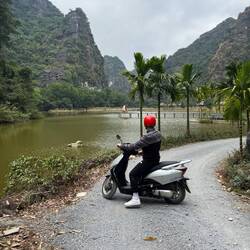 Ich glaube mit allem was wir erlebt haben, könnte ich noch drei Seiten füllen, hier nur einmal in deutlich verkürzter Fassung, wie die Tage so aussahen. Also wir haben an allen Tagen regelmäßige Stopps bei tollen Aussichtspunkten eingelegt, um den Po etwas zu entlasten, eine Kaffee zu trinken oder irgendwelche Spiele zu spielen. Die Fahrer haben in den Pausen meist Karten gespielt, was immer mehr als unterhaltsam war, ihnen dabei zu zuschauen. Es gab außerdem immer sehr leckeres Mittag und Abendessen bei den Stopps oder in der Unterkunft. Am ersten Abend haben wir mit einer der anderen Gruppe, mit der wir uns sehr gut verstanden haben, den Abend erst mit einheimischen auf dem Markt und dann bei einer wilden Karaoke Nacht mit einer Menge Happy Water verbracht. Der zweite Abend im Homestay war dann ruhiger bei Karten Spielen und natürlich wieder Happy Water 🙈🤣. Neben den Stops an den View Points gab es dann noch kleine Wanderungen, der Besuch eines traditionellen Hmoung Dorfes, eine Bambusboottour und Baden im Wasserfall (was uns definitiv zu kalt war 🤣). Nachdem wir am 3. Tag wieder zurückgekommen sind, sind wir noch mit einigen Leuten der anderen Gruppe und dem niederländischen Pärchen aus unserer Gruppe noch was essen, bevor es mit dem Nachtbus zurück nach Hanoi ging für die letzten beiden Tage in Vietnam.
