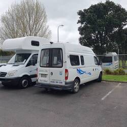 Nach kalter Nacht und sonnigem Frühstück war mal wieder Leeren bzw. Befüllen aller Tanks des Camper-Vans an der Dump Station notwendig, das ich heute mal erfolgreich delegieren konnte.