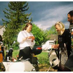 Was ich heute gelernt habe? Erstens: Wenn man ein bisschen risikofreudig ist, reicht der Tank auch für 170 Kilometer. Nervenkitzel pur, wenn seit einer halben Stunde die Tanklampe leuchtet und weit und breit nur Felder und Wälder. Zweitens: Straßensperren sind für eine Vespa eigentlich nur Deko. Da kommt man schon irgendwie durch.