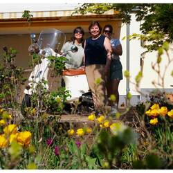 Nel pomeriggio sono arrivato da mia zia Manu, e lì è iniziato un piccolo paradiso. Yoga al sole con le mie cugine, un risotto agli asparagi pazzesco a cena, e mio zio che ha pure lavato la mia Vespa. (Incredibile quanto fosse già sporca dopo un solo giorno.) E posto in garage per la notte, mica male.