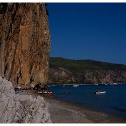 Der zweite Ausflug brachte mich zur Baia del Buondormire. Schwerer zu finden, dafür leichter zugänglich, zieht sich hier ein Strand entlang einer Steilküste über mehrere Kilometer. Eine singende Kolonie Mauersegler kreiste über dem Meer, während sich Grotten an Buchten reihten und kleine Inseln und Felsen wie von einem anderen Planeten aus dem blauen Wasser ragten.