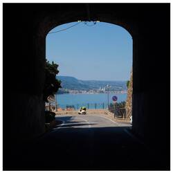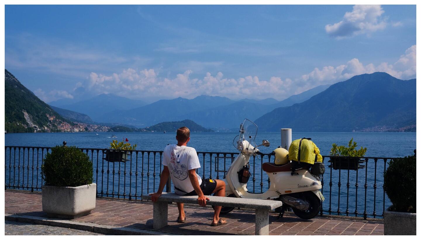Como, die Stadt von Alessandro Volta, dem großen Physiker und Erfinder der elektrischen Batterie. Passend also, dass meine kleine Vespa dort noch einmal neue Energie und Aufmerksamkeit bekam, bevor es weiterging. Die Fahrt entlang des Sees war ein Genuss: enge Straßen, in denen große Autos vorsichtig balancierten, während ich im Slalom leichtfüßig vorbeiflog. Kleine Dörfer direkt am Wasser, Brücken, die Häuser miteinander verbanden, und immer wieder dieser Blick, auf den tiefblauen See, die grünen Berge im Hintergrund und die prachtvollen Villen am Ufer. Ein herrlicher Abschied aus Italien.