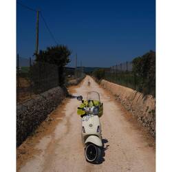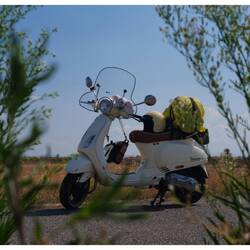 Prima di partire, la Vespa mi ha ricordato che ama la varietà: il cavalletto si è rotto. Parcheggiare è diventato un piccolo esercizio di ingegno, ma ho trovato un modo per cavarmela lo stesso.