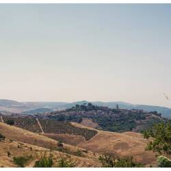 Dopo Caltagirone, il paesaggio si è fatto più vivo: piccoli borghi arroccati sulle colline, intervallati da uliveti argentati e vigneti di un verde brillante. Avvicinandomi a Enna, la vita si faceva più presente, e man mano che raggiungevo il cuore dell’isola, la pianura aperta lasciava il posto a dolci colline dorate, interrotte da formazioni rocciose e piccoli boschi di querce.