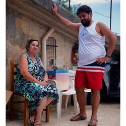 Pochi chilometri mi separavano dalla mia prossima tappa – appena 60 – e la Vespa li ha percorsi quasi volando. Sapevo che ad aspettarmi c’erano persone che per me sono come una famiglia. Concetta e Rosario mi hanno accolto con un calore che fa dimenticare ogni fatica del viaggio: appena sceso dalla Vespa, mi hanno messo in mano degli asciugamani per una doccia rinfrescante e mi hanno fatto accomodare a una tavola imbandita, dove il profumo di un ragù di cinghiale cotto per ore e di pasta fresca riempiva l’aria. Abbiamo riso, parlato, mangiato – gustando non solo il cibo, ma soprattutto la compagnia. Dopo pranzo, due ore di sonno per recuperare le notti passate sulla mia materassina rotta. Qui, nella loro casa sulle colline dietro Palermo, tutto sembra leggero e protetto.