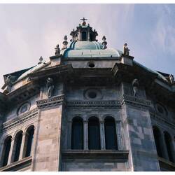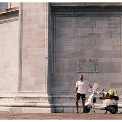 All’orizzonte già si innalzavano le montagne. Ma prima di lasciare l’Italia volevo assaporare ancora fino in fondo il tempo rimasto. Così ho fatto un ultimo giro a Como. Davanti al Duomo la mia Vespa è diventata all’improvviso una piccola star: una famiglia francese voleva fotografarla, i loro bambini hanno posato entusiasti accanto al mio motorino. Orgoglioso, ho consegnato il casco a uno dei ragazzi – per la piena scenografia.