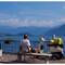 Como, la città di Alessandro Volta, il grande fisico e inventore della pila elettrica. Appropriato, dunque, che proprio lì la mia piccola Vespa ricevesse ancora un po’ di nuova energia e attenzione, prima di ripartire. La strada lungo il lago è stata un vero piacere: stradine strette in cui le grandi auto avanzavano con cautela, mentre io sfrecciavo leggero in slalom. Piccoli borghi direttamente sull’acqua, ponti che collegavano le case, e sempre di nuovo quella vista – sul lago blu profondo, le verdi montagne sullo sfondo e le ville eleganti che ornavano la riva. Un addio meraviglioso all’Italia.