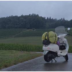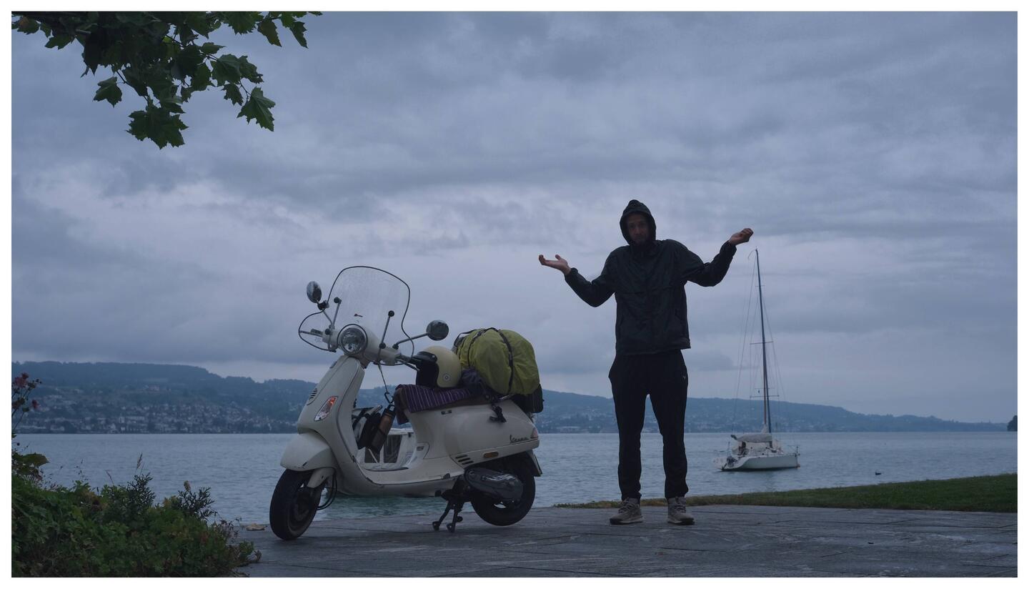 Ein drohendes Unwetter über der Schweiz hat mich weitergetrieben. Eigentlich wollte ich mir am Zürichsee einen Tag Pause gönnen, meinem Rücken eine kleine Erholung schenken nach der Alpenüberquerung und den vielen langen Stunden auf der Vespa. Doch wenn ich geblieben wäre, hätte mich das Unwetter dort gefangen. Also blieb mir nichts anderes übrig, als am nächsten Morgen weiterzufahren, auch wenn die Vorboten des Sturms bereits in der Luft lagen.