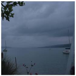 Doch die Reise war noch nicht zu Ende: Mit den letzten Sonnenstrahlen rollte ich weiter hinab bis an den Zürichsee. Dort erreichte ich pünktlich mein Tagesziel. Gerade noch rechtzeitig, bevor ein mächtiges Sommergewitter aufzog und die letzten Badegäste vom Ufer vertrieb.