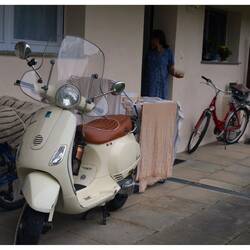 Vor der Abfahrt machte mir die Vespa gleich klar, dass sie Abwechslung liebt: der Ständer brach. Parken ist jetzt ein kleines Kunststück, aber ich habe einen Weg gefunden, es irgendwie hinzubekommen.