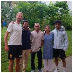 Umso dankbarer war ich für den warmen Empfang bei der Familie Vasudevan: eine heiße Dusche, gutes Essen, herzerwärmende Gespräche. Das Leben kehrte zurück in meine Glieder. Morgen werde ich hier einen Tag Pause machen – nach 800 Kilometern in drei Tagen und zwei Marathon-Etappen mit jeweils fast zehn Stunden auf der Vespa ist es Zeit, innezuhalten, durchzuatmen und Kraft zu sammeln. Die letzten beiden Etappen nach Bonn liegen noch vor mir. Wie schön, dass ich hier einen weiteren Tag verweilen darf.