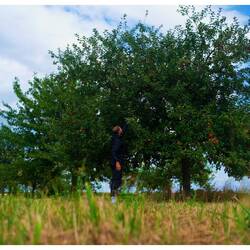 Nel pomeriggio sono diventato più sereno. Alle mie spalle si è aperto qualcosa che in tre giorni di Germania non avevo ancora visto: il cielo azzurro. Raggi di sole che asciugavano i miei pensieri umidi. Anche le strade sono cambiate, più tranquille. La Rheinhessen mi ha accolto con vie meno trafficate, che attraversavano paesini vinicoli e filari di viti. Mi sono concesso piccole soste – all’ombra di un melo, tra le vigne, con il vento estivo che frusciava tra le foglie.