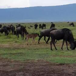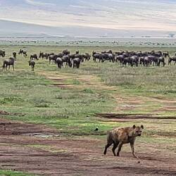 Fahrt vorbei an Massai-Dörfer zum Ngorongoro-Krater. Bis zum Horizont Unmengen an Tieren...Gnus, Hyänen, Flamingos, Hippos, Strausse, Löwen, Several und in der Ferne sogar ein Nashorn 🦏