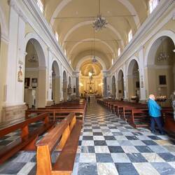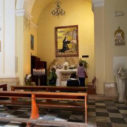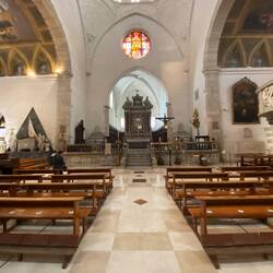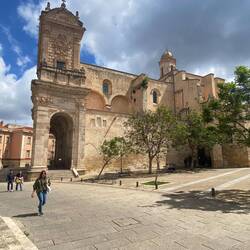 So haben wir die Kirche „San Paolo Apostolo“ besichtigt. Die Kirche steht inmitten der Altstadt auf einer kleinen Anhöhe. Sie wurde im Frühmittelalter über den Resten punischer und römischer Tempel errichtet. Trotz späterer Umbauten blieb das schlichte Erscheinungsbild gewahrt. Ein Relief mit dem Apostel Paulus schmückt das Portal (15. Jh.). Auffallendstes Element ist die mit bunten Keramikziegeln gedeckte Kuppel (20. Jh.). dreischiffige romanische Kirche aus dem 11./12.