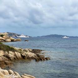 Was die Küste hier betrifft, so ist diese sehr schroff mit sehr wenig Sandstränden nicht wie an der Ostküste und Süd-Westküste. Dafür bricht sich das Meer an schroffe Felsformationen. Sieht gigantisch aus, ist aber nicht zum Schwimmen geeignet. Gegen Abend sind wir dann am „Arcipelago di La Maddalena“ angekommen.