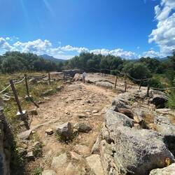Von der Vielzahl der Fundstätten, die im Umkreis von ca. 25km verteilt sind, haben wir uns die Fundstätte „Protonurahe Albucciu bei Arzachena angeschaut. Diese stellt in der Gallura, unter den sardischen Nuraghen , eine Besonderheit dar und erinnert an eine korsische Torre. Neben der Protonuraghe wurden Überreste eines Rundhüttendorfes und etwa 80 m entfernt die eines Gigantengrabes sind die Vor- oder Frühform der klassischen Turmbauten oder Tholosnuraghen (italienisch Nuraghe a tholos) der bronzezeitlichen Nuraghenkulturen Sardiniens.