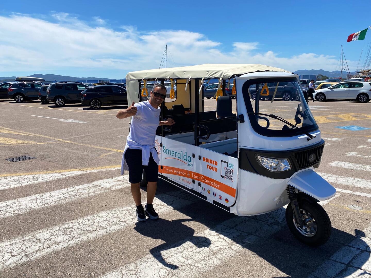 Den Platz haben wir um 11:00 geräumt und sind nach Olbia in die Nähe des Hafens gefahren. Wie der Zufall will, stand gleich beim parken ein „City Tour“ Luxus-Dreirad-Gefährt bereit. Ausgerüstet mit allem technischem Zubehör wie Deutscher Führung über einen Lautsprecher. Nach 30 Minuten hat uns der junge Fahrer , zu zweit , alle Sehenswürdigkeiten in der Altstadt gezeigt. Der anschließende Bummel in der Altstadt war dann kein Problem.
