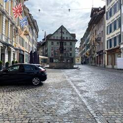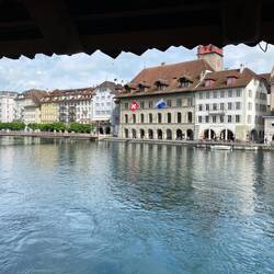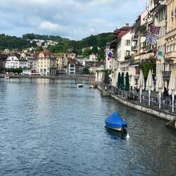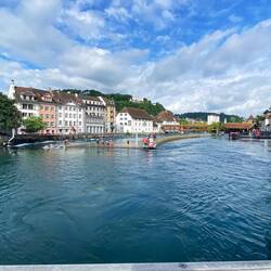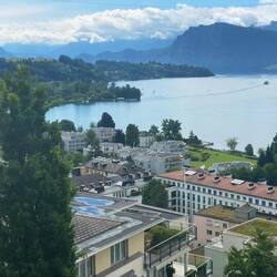 Na ja, wir sind gleich in der Früh in die Stadt gefahren. Obwohl heute in der Schweiz ein Feiertag ist (Auffahrt), hatte das „Two Hands“ geöffnet, wo wir gepflegt frühstücken konnten natürlich mit Vollkornbrot. Danach haben noch einen kurzen Stadtrundgang gemacht und waren über den hohen Wasserstand des Vierwaldstätter See überrascht. Das Wehr an dem Reussablauf wurde gerade komplett geöffnet, was sehr selten ist.