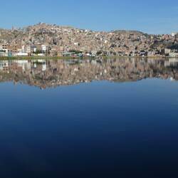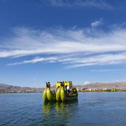 Floating Islands of Uros. The islands are entirely built on pieces of soil, roots and leaves which they have to renew twice a year to keep it stable.