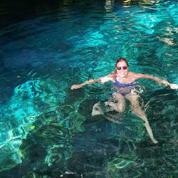 Alquilamos bicicletas (de muy pobre calidad, todavía me sorprende que lo hemos sobrevivido 😅) y fuimos por la Gran Cenote. El agua era de color turquesa increíble, las rocas estaban iluminadasRead more