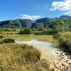 Hike through the green countryside, passing several animals and caves, getting lost and helped by a Cuban farmer and return to Viñales for dinner and drinks.