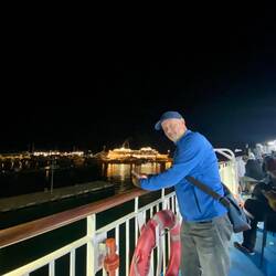 Gleich geht's los. Super Schiff. Groß, clean, gemütliche Kabine. Und Micha kann für lau mit in die Kabine....