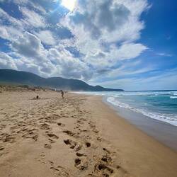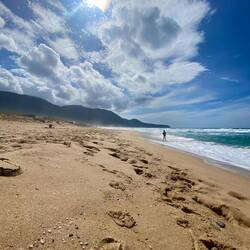 Stellplatz mit Strandbar und kleinem See. Hier warten wir auf die Schweizer. Ganz ruhiges Wasser, neben an ein kleiner See mit einer Kite Schule.