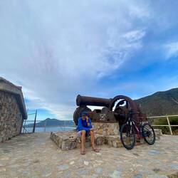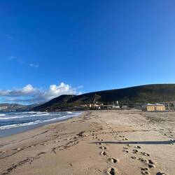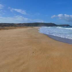 Stellplatz direkt am Beach. Eigentlich nur ein Parkplatz ohne irgendwas. Wildes Wasser und windig. Abfahrt über viele Serpentinen.