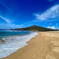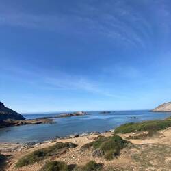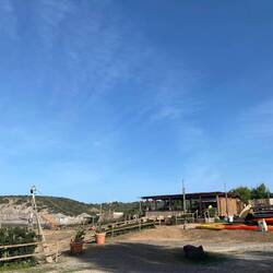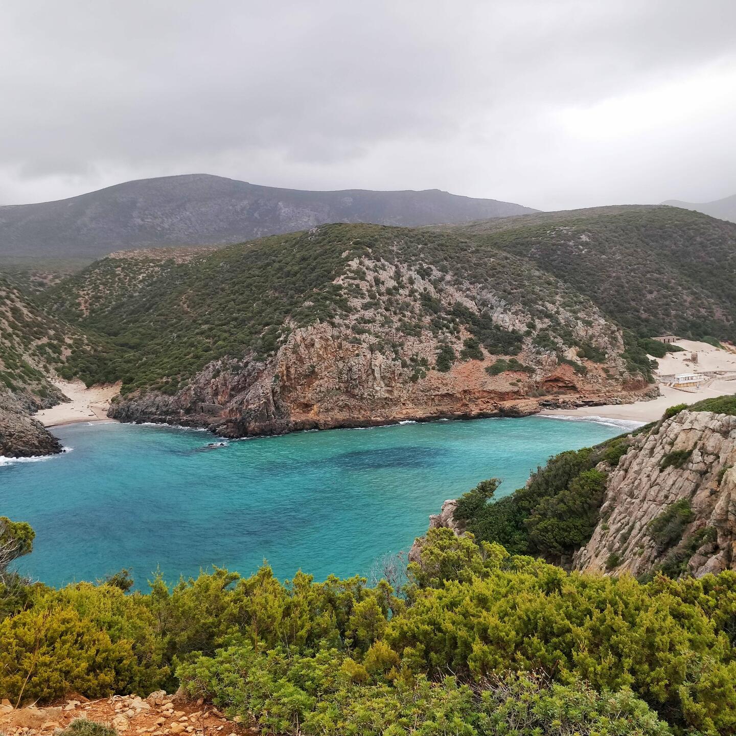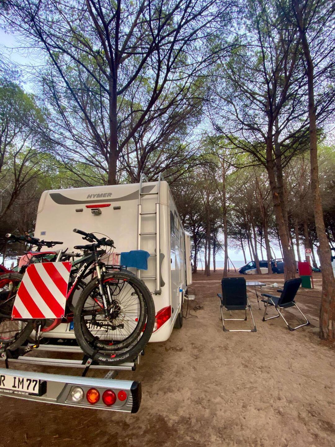 Stehen auf dem Campingplatz Iscrixedda, Unter Pinien an einem langen Sandstrand an der Ostküste. Beste Pizzaria bislang. Hier chillen wir für eine Nacht bevor es dann nach Cala Gonone geht