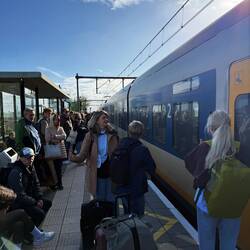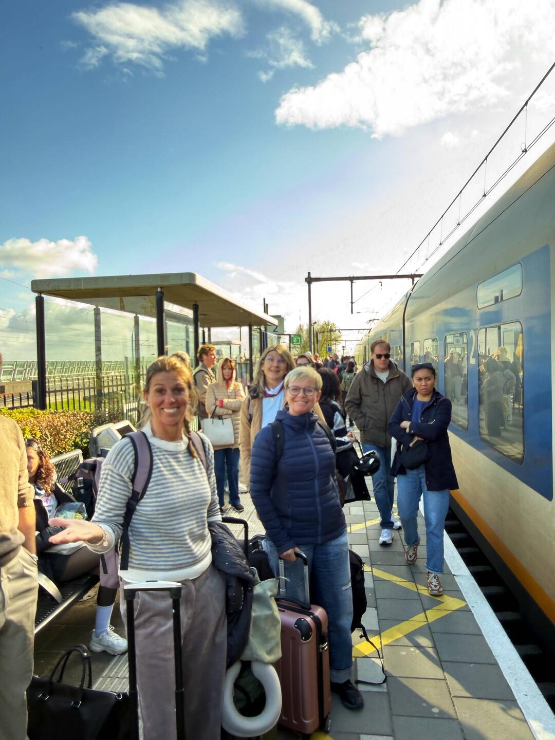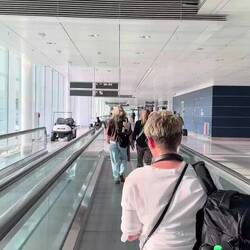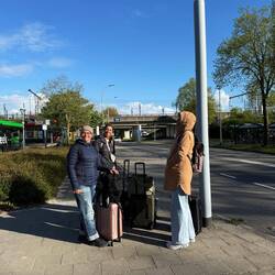 Kurz vorm Flughafen wurden wir vom Schaffner aus dem Zug rausgeworfen, da einige Radfahrer zu viel in der Bahn waren.