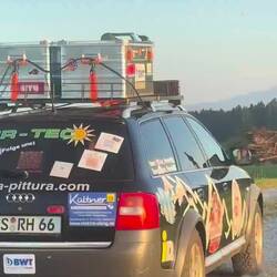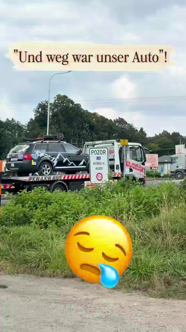 Nach einen irreparablen Getriebeschaden in Tschechien, haben wir Zuhause in Bayern ein Ersatz Auto ( das unserer Tochter) geholt und sind wieder zurückgekommen. 😅