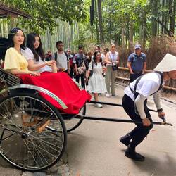 Après un excellent déjeuner, nous sommes partis découvrir le quartier d'Arashiyama, toujours sous un beau soleil et très chaud.