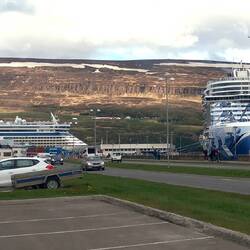 Zwei große Kreuzfahrtschiffe machten heute in Akureyri fest.