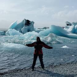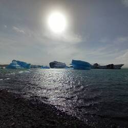 Das Wetter sah nicht vielversprechend aus, entgegen der Vorhersage. Doch sowohl sich im Rückspiegel noch die dunklen Wolken zeigten, war voraus der Himmel blau. Der Gletschersee Jökulsalon war das Highlight auf dem Weg nach Höfn. Mehrmals sahen wir die Gletscherzungen von Islands größtem Gletscher dem Vatnajökull, Europas größtem Gletscher.