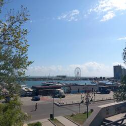 Eine an Bedeutung gewonnene Hafenstadt. Am Horizont eine Kette Transportschiffe mit Waren aus der Ukraine.