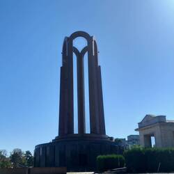 Parlament, Kirche und Zufallsfund, weil in keinem Reiseführer eine Gedenkstätte zum Kriegsende. Bewaffnet bewacht