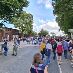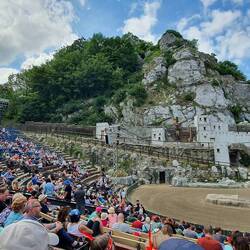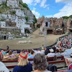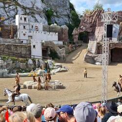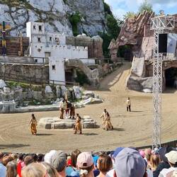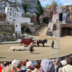 1 Stunde vor Einlass ,ziemlich viele Menschen. Wir verweilten am Karl May Platz und gingen eine halbe Stunde vor Beginn der Show rein.