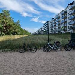Heute morgen gab es einen schnellen Kaffee und dann fuhen wir zum Bäcker und holten Brötchen. Unsere Fahrräder stellten wir in der nähe der Strandpromenade ab.