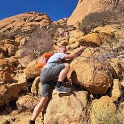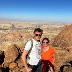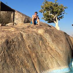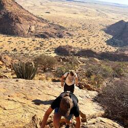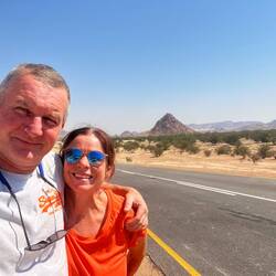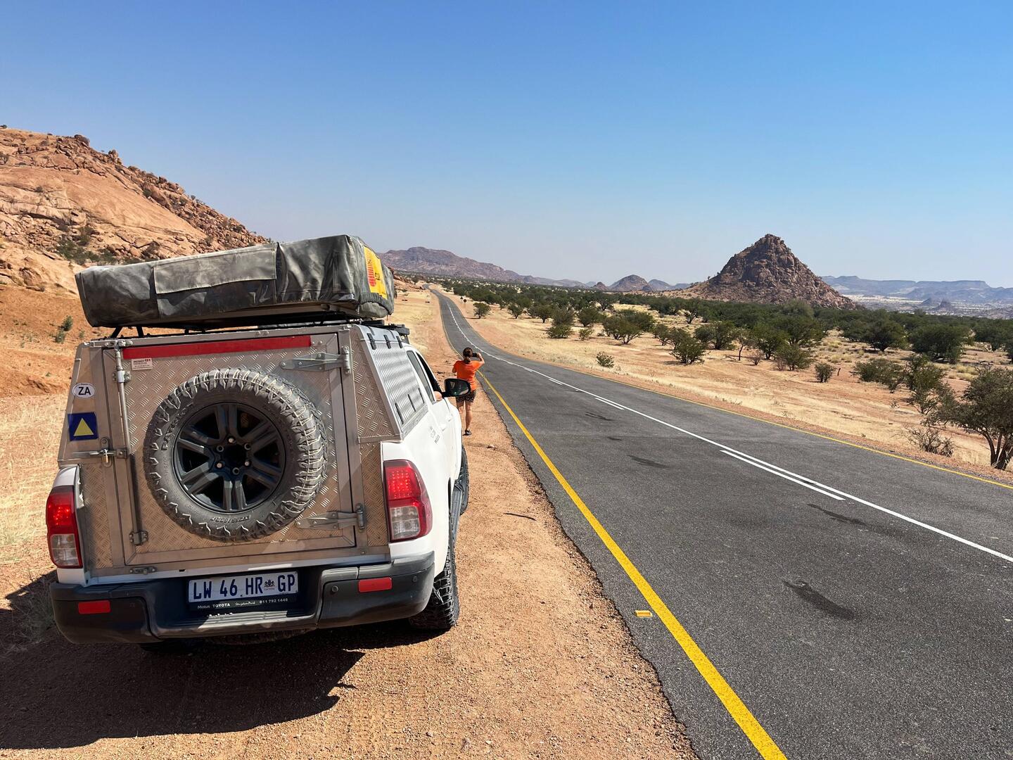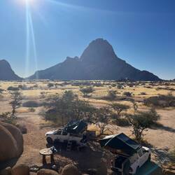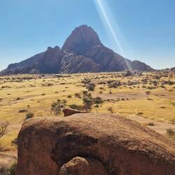 Heute geht’s weiter Richtung Norden, unser Ziel das Damaraland. Vorbei am Brandberg Massiv, wo man mit 2580m den Königstein findet - Namibias höchsten Berg 🏔️.