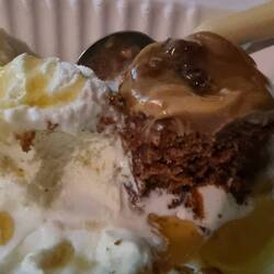 A walk, and a wash (shower didn't have quite the same ring to it), then off to the pub for a counter meal. My lemon pepper calamari was delicious, and judging by the way Tom polished off his huge, dripping burger with the lot (and more!), so was his. As football was on (and he can't eat dessert immediately after finishing the meal), we got a couple of sticky date puddings, with scream (icecream) to go. And boy, it went!