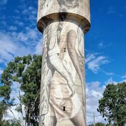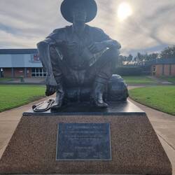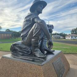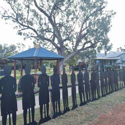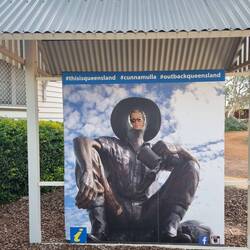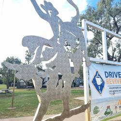 Well, here we are, in Cunnamulla, searching for the Cunnamulla fella. After many steps around the town, we finally found him! And all of the women lining up to see him!