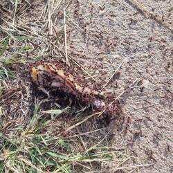 Well, that wasn't me, today, but it was Tom! On our walk out to the Riverside Caravan Park, about four and a half kms out of town, they attacked him with such ferocity that he was gagging and choking! I thought he was having a conniption.