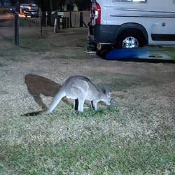 We had a couple of nocturnal visitors tonight, with a feral cat stalking across the grass. Then a mob of kangaroos came thumping down past us to the riverside, or is that dam side? to feed on the sweet and lusciously tender grass at the edge of the water, their silhouettes shining in the moonlight!