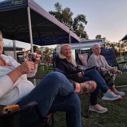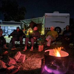One by one, they arrived in their twos, setting up their caravans, wild west style - all in a circle and pitch everything in the middle. I was so impressed by their speed and efficiency in getting set up and bringing out the liquid nourishment. We were still trying to do our washing, so we could make our bed! But much excitement was had with us all being there together. ☺️