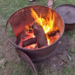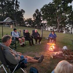 It seemed to be a bit of a competition happening, as another one, not to be outdone, whipped up a cheese and onion damper (cooked in a camp oven on the table), followed by chicken drumsticks, also cooked in the same. Boy, do I now know what I want to be when I grow up!?! Yes. Yes indeed I do. I wanna, I wanna... just kidding. I want to be a man! Yes indeedy, I do! I got a taste of it today, with the real women doing all the work, and me just sitting there twiddling my thumbs, feeling like a twat for not having thought of anything like that, let alone for everyone! Oh. Do men actually feel like twats, or do they just take it for granted?