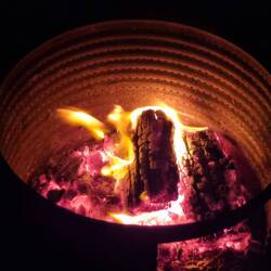 Anyway, here we are in cute St George, enjoying a fireside view. And pretending I'm on a rotisserie, turning round and round, heating all sides.
