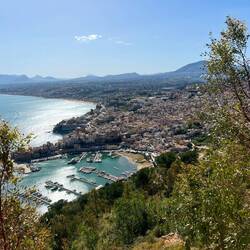 Um 6 Uhr sind wir aufgestanden, haben um 7 Uhr gefrühstückt, und sind um 8:50 Uhr nach Cefalu abgefahren.
